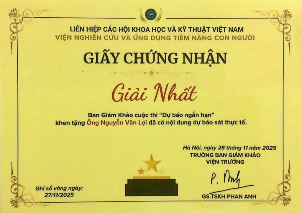 THÀNH TÍCH NỔI BẬT Giải nhất cuộc thi “Dự báo ngắn hạn” do Viện Nghiên cứu và Ứng dụng Tiềm năng Con người tổ chức. Ghi danh Sổ vàng ngày 27/11/2025. Chủ nhiệm đề tài nghiên cứu Trạng Trình AI, ứng dụng trí tuệ nhân tạo trong luận giải số mệnh, tư vấn phát triển […]